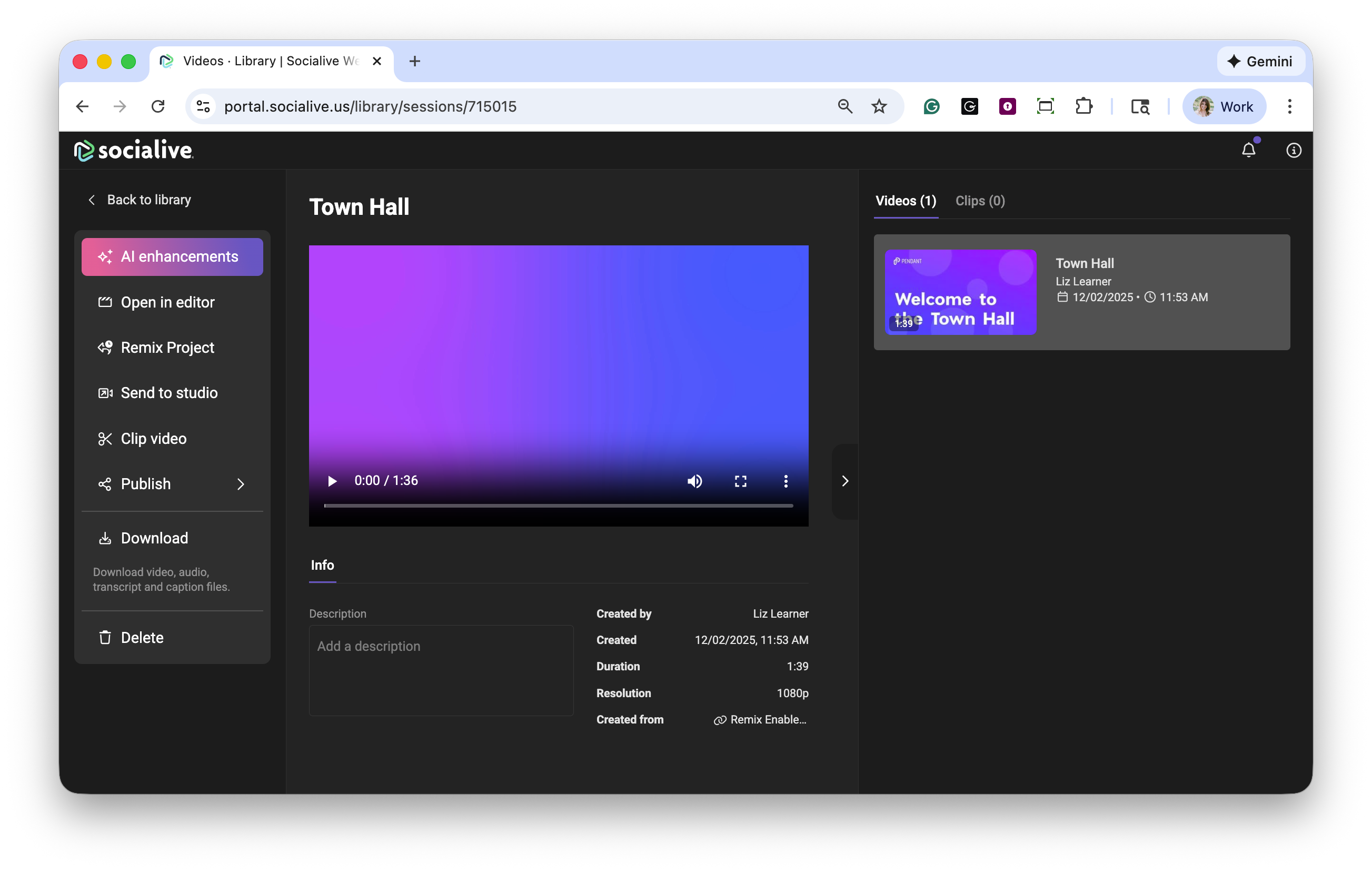 1. Go to the Library, select the video you want to apply Super Res to, and open it.